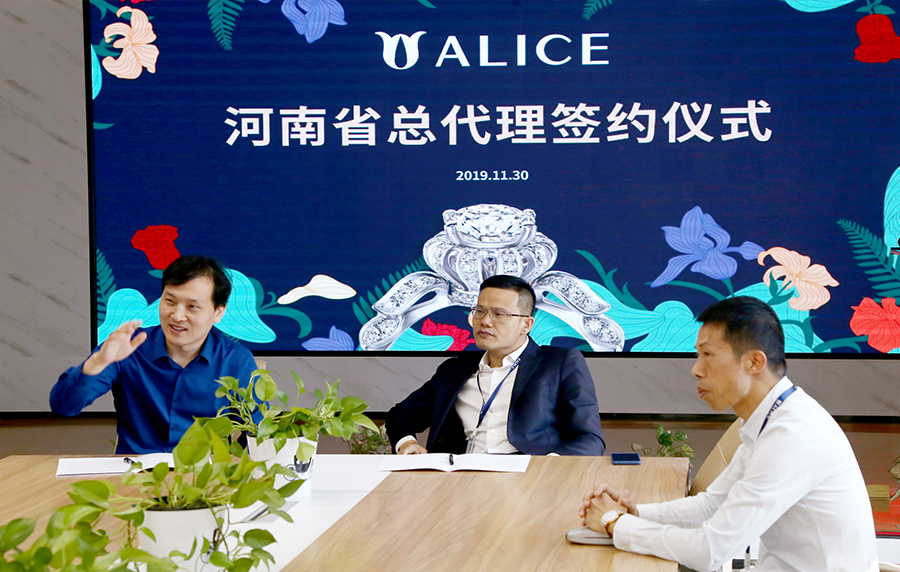 11月30日,河南省总代理与爱丽丝珠宝董事长郑国阵先生于爱丽丝珠宝深圳总部正式签署合作协议,成为爱丽丝珠宝城市合伙人。此举,意味着河南省价值近千万的珠宝市场将全面向爱丽丝开放,爱丽丝珠宝也将为中原地区展现在中国土壤中孕育出的国际设计珠宝,通过珠宝传达爱丽丝“花开世界,爱旅全球”的品牌生活理念。