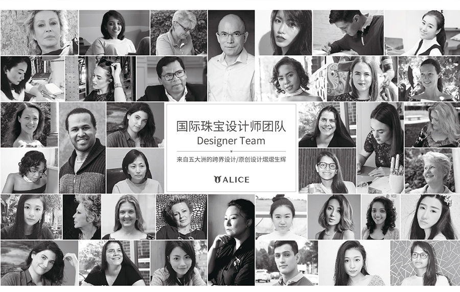 爱丽丝珠宝自品牌建立之初,便网罗了来自全球的的新锐设计师,为他们提供充分自由的设计空间。至今,爱丽丝珠宝以拥有了中国最多的国际设计师团队。在今年的星光云集的“香港国际珠宝展”、“中国国际进口博览会”等国际展会中,爱丽丝珠宝以其产品的艺术性与包容性而收获广泛好评。国际设计师与中国品牌的结合,文化碰撞与思想结合让爱丽丝的珠宝设计有更多的创新与可能。