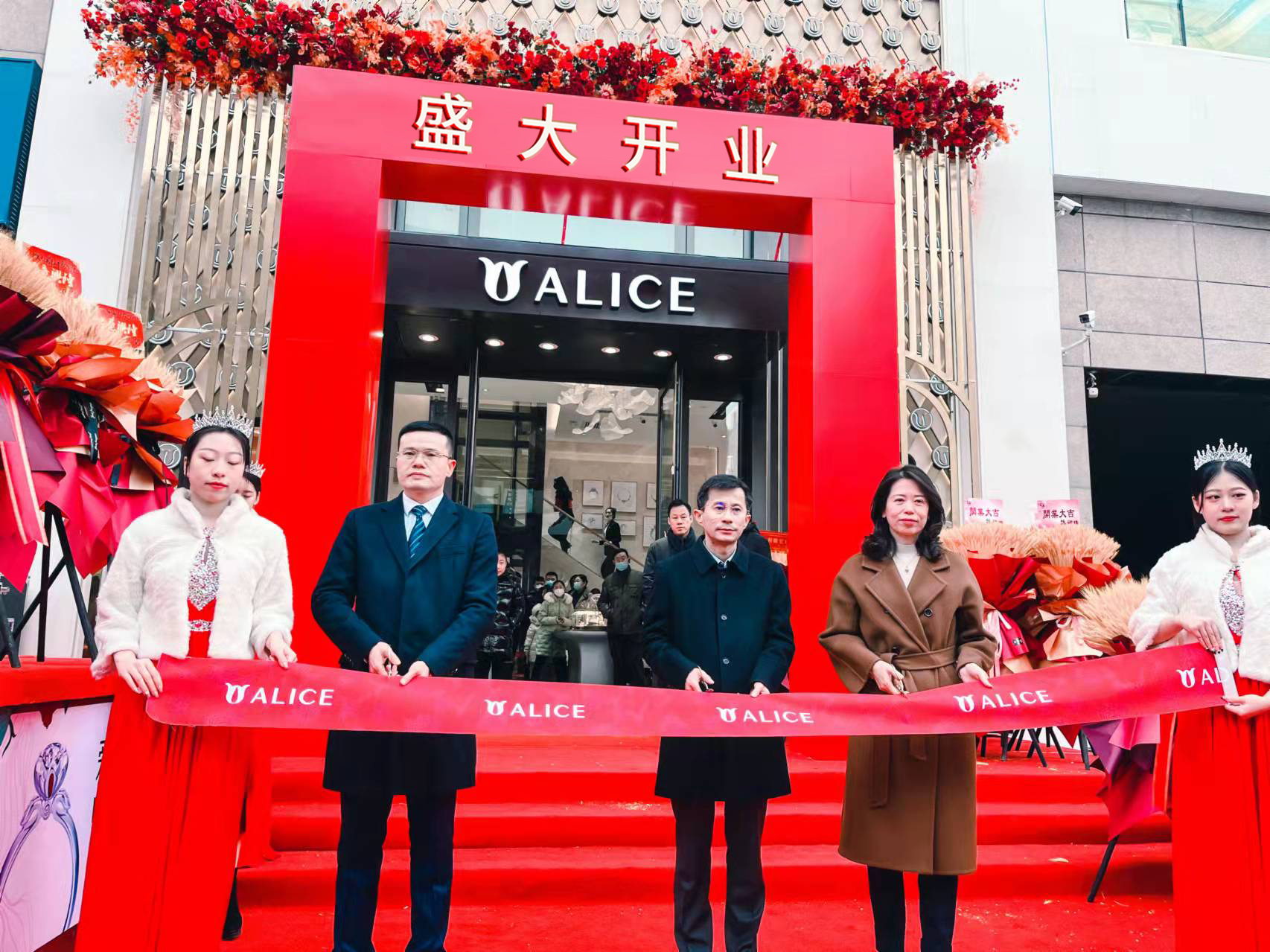 开业仪式上,在欧亚集团副总经理、欧亚商都总经理周伟、欧亚商都副总经理于清云及香港爱丽丝珠宝集团董事长郑国阵等二百余位社会各界嘉宾的共同见证下,进行了隆重的剪彩仪式,祝福爱丽丝珠宝欧亚商都店璀璨盛放。