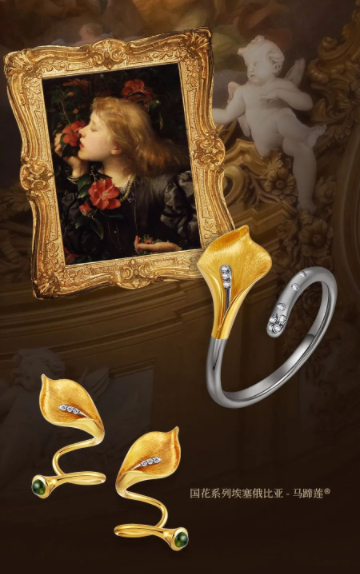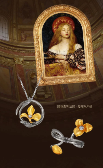 小钻镶嵌的产品因低价的优势,更换频率和复购频次大幅增加,为珠宝行业的发展带来了新的契机。基于市场的需求,ALICE爱丽丝珠宝设计不同的产品体系,以入门款产品吸引年轻、购买力相对较弱的新客户,培养他们对品牌文化的认同感,当逐步接受品牌审美,并深入了解品牌故事和产品系列后,会选择钻石或珠宝点缀的款式。ALICE爱丽丝珠宝的【爱丽丝花®】黑金系列取法国国花为灵感,花瓣中心点缀钻石,以特立独行的黑金色泽搭配时尚黄金色泽的小众高级感,彰显了热情洋溢的法式风格,融合国花和钻石的艺术创意,在钻石的时尚价值上实现创新,让产品变得鲜活起来。