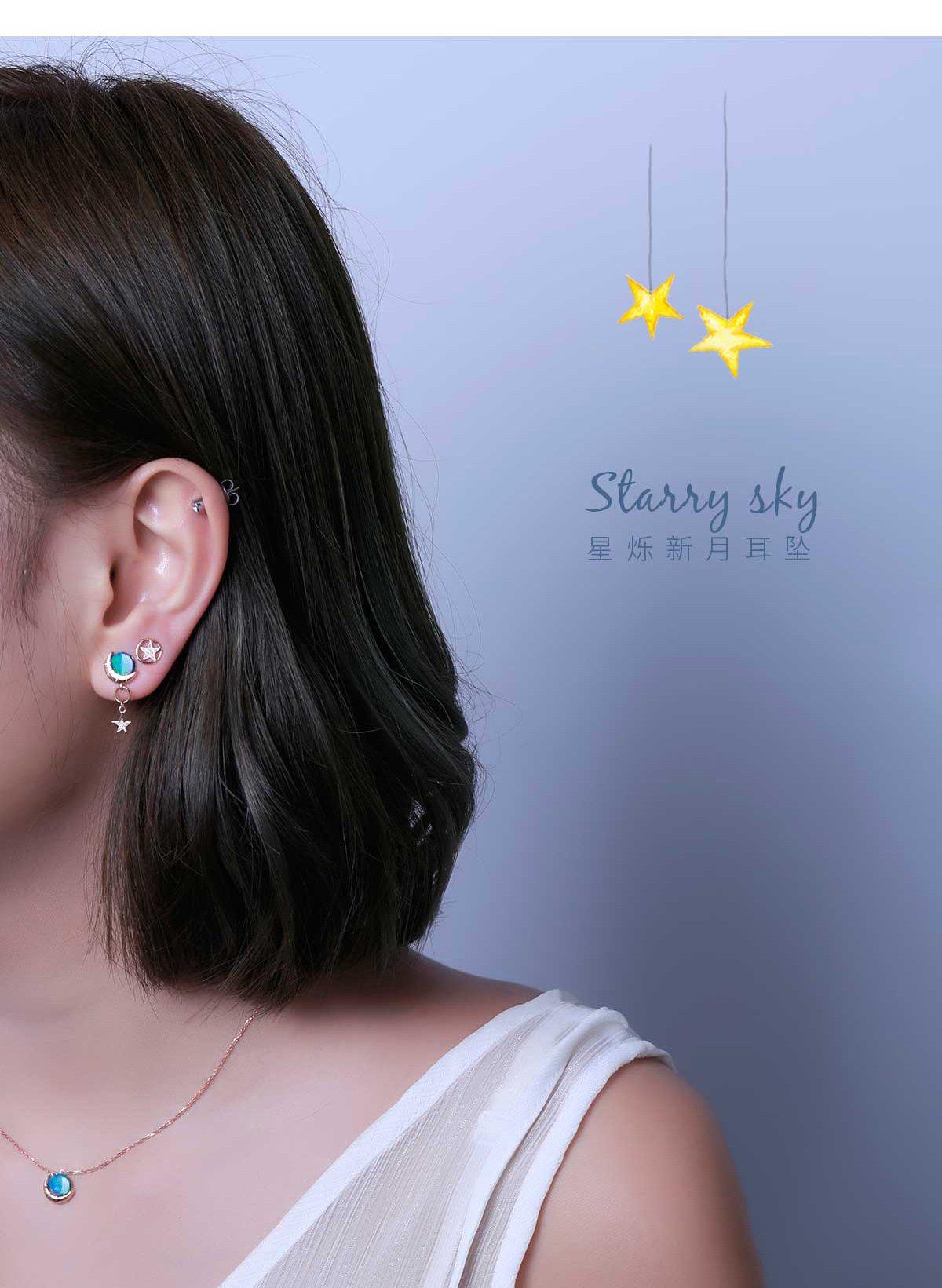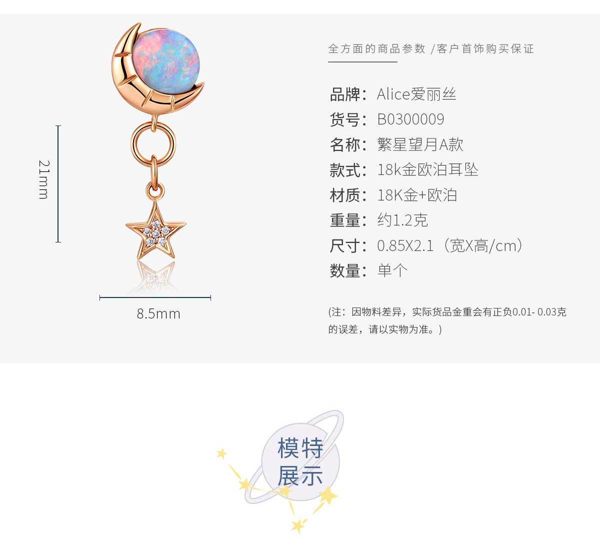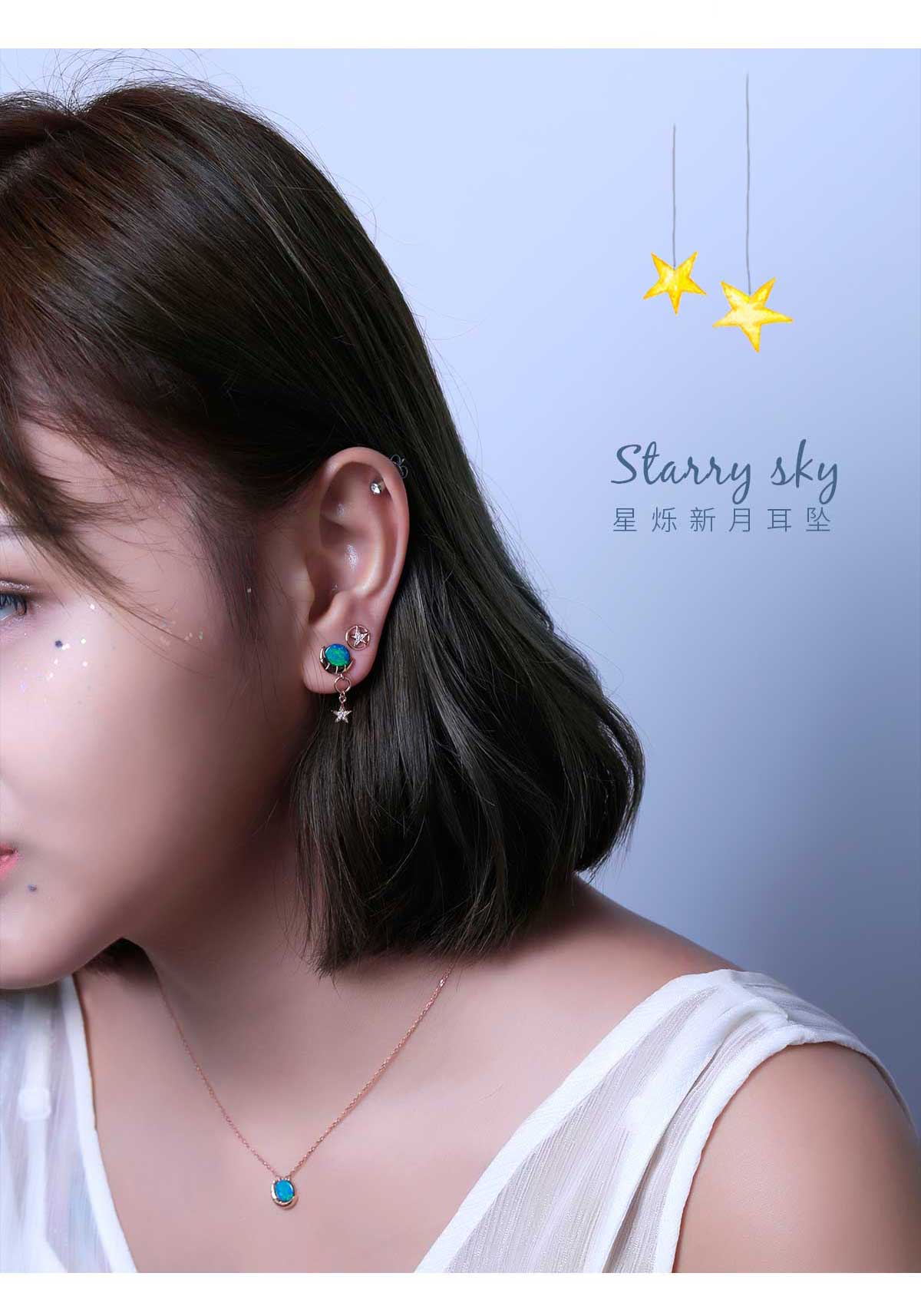 【星空系列】18K金欧泊耳环